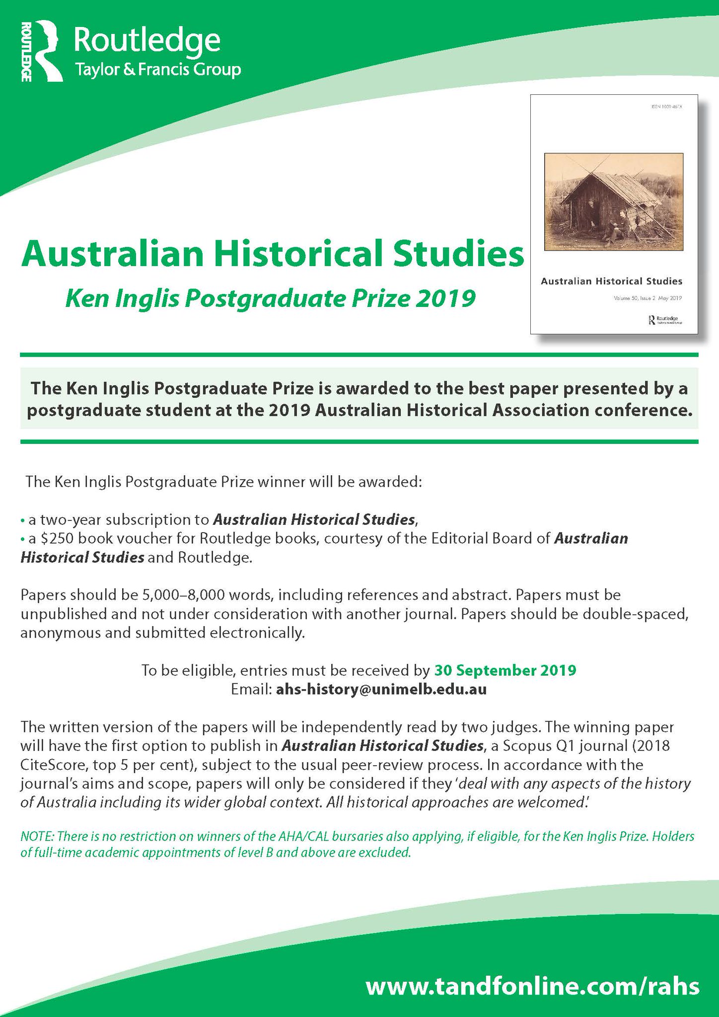 The Ken Inglis Postgraduate Prize is awarded to the best paper presented by a postgraduate student at the 2019 Australian Historical Association Conference.
